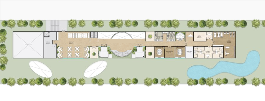A podium layout is a multi-level building design where the lower levels (the “podium”) serve as a shared base for the tower or residential units above. This configuration is commonly used in urban and high-density developments.